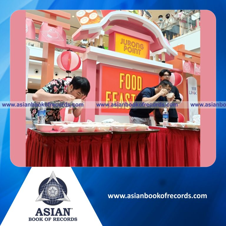 The Fastest Eating of Soup Noodles In 10 Min was achieved by NG Chin Sheng (in Jurong Point’s Food Festival) in Singapore on September 09, 2023. It counted to 16 bowls of 250 grams noodles with soup.