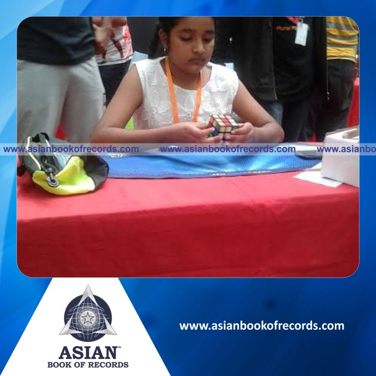 The Fastest Time to Solve Rubik's Cube while Blindfolded by an Individual (Female) was achieved by Soundhariya Hariharan at St. Xavier’s College, Mumbai, Maharashtra, India on February 6, 2016. It clocked to 2 minutes and 56.43 seconds.