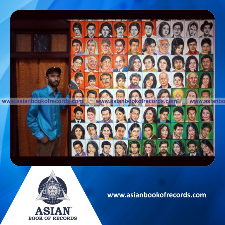 The Highest Number of Bollywood Stars Portrait Drawn by an Individual (Male) was achieved by Jagjot Singh, Punjab, India between October 8, 2012 and October 10, 2013. It counted to 100 portraits.