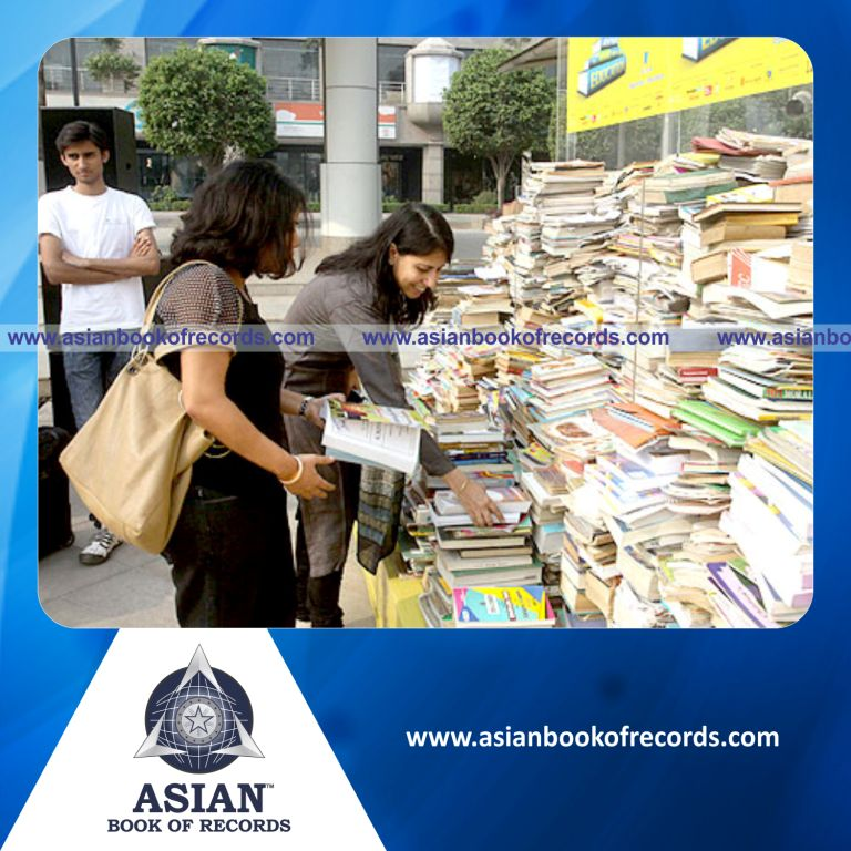 The Highest Number of Books used to make a Wall was achieved by Avivas Street to School Programme, Kolkata, West Bengal, India on September 5, 2010. It counted to 200,000 books.
