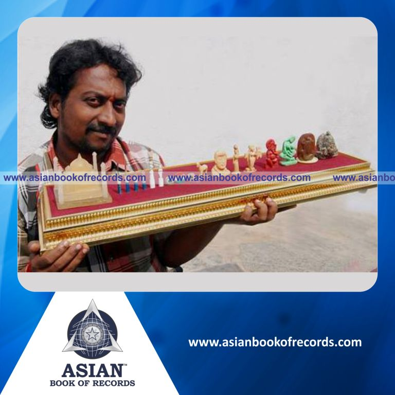 The Highest Number of Carvings on Different Materials was achieved by Pamarthi Siva Naga Rao, Krishna, Andhra Pradesh, India on October 18, 2014. It counted to 30 articles.