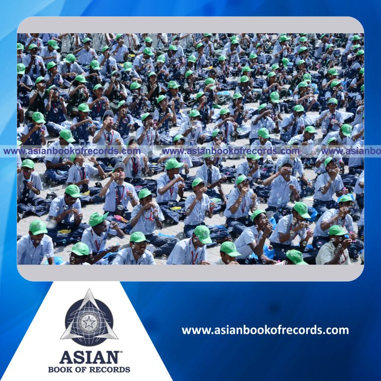 The Highest Number of Children Blowing Soap Water Bubbles Simultaneously (Single Venue) was achieved by SPK Schools, Tiruchengode, Namakkal District, Tamil Nadu, India on January 8, 2014. It counted to 1296 participants.