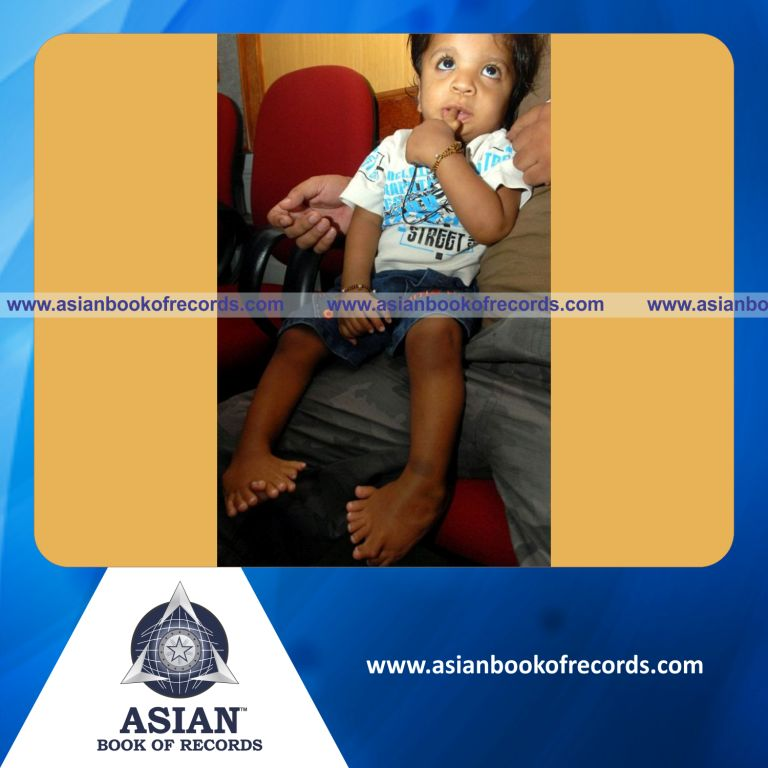 The Highest Number of Fingers and Toes by Birth was achieved by Akshat Saxena, Uttar Pradesh, India on March 20, 2010. It counted to 7 on each hand and 10 on each toes.