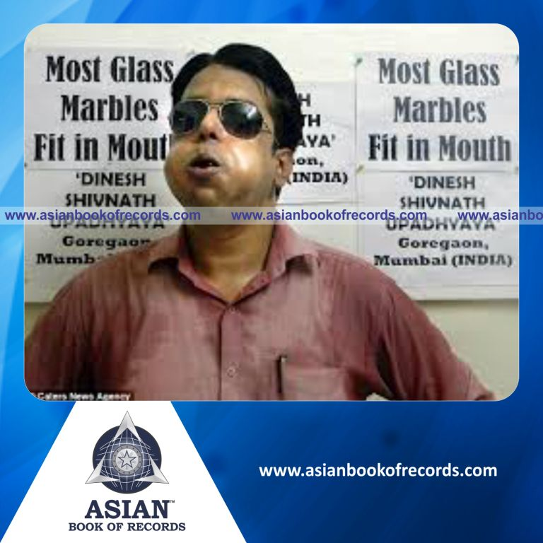 The Highest Number of Glass Marbles Stuffed in Mouth by an Individual (Male) was achieved by Dinesh Shivnath Upadhyaya, Goregaon, Mumbai, Maharashtra, India on May 7, 2015. It counted to 100 glass marbles in 20 seconds.