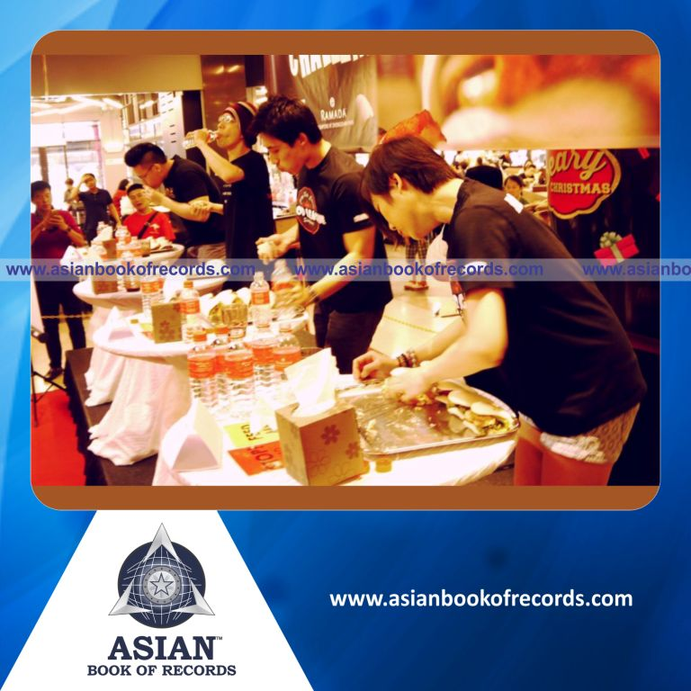The Highest Number of Lotus-Leaf Buns Eaten in 10 Minutes was achieved by Zhongshan Park (Ramada Hotel), Singapore on November 19, 2016. It counted to 22 burgers (Lotus Leaf Buns stuffed with Asian-Styled Meats).