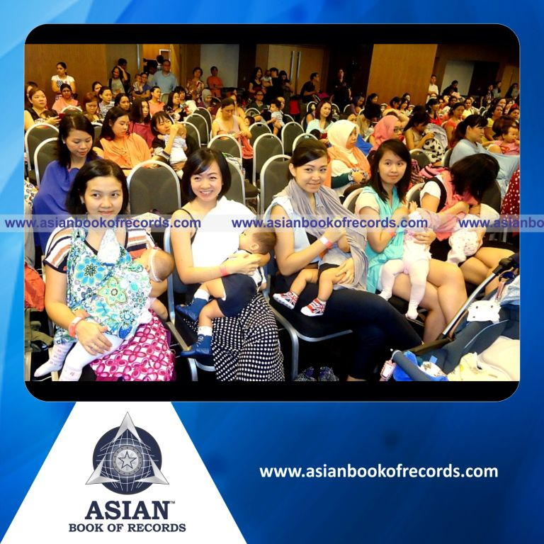 The Highest Number of Mothers Breastfeeding Simultaneously (Single Venue) was achieved by Thomson Medical at Suntec Convention Centre, Singapore on August 29, 2015. It counted to 154 mothers.