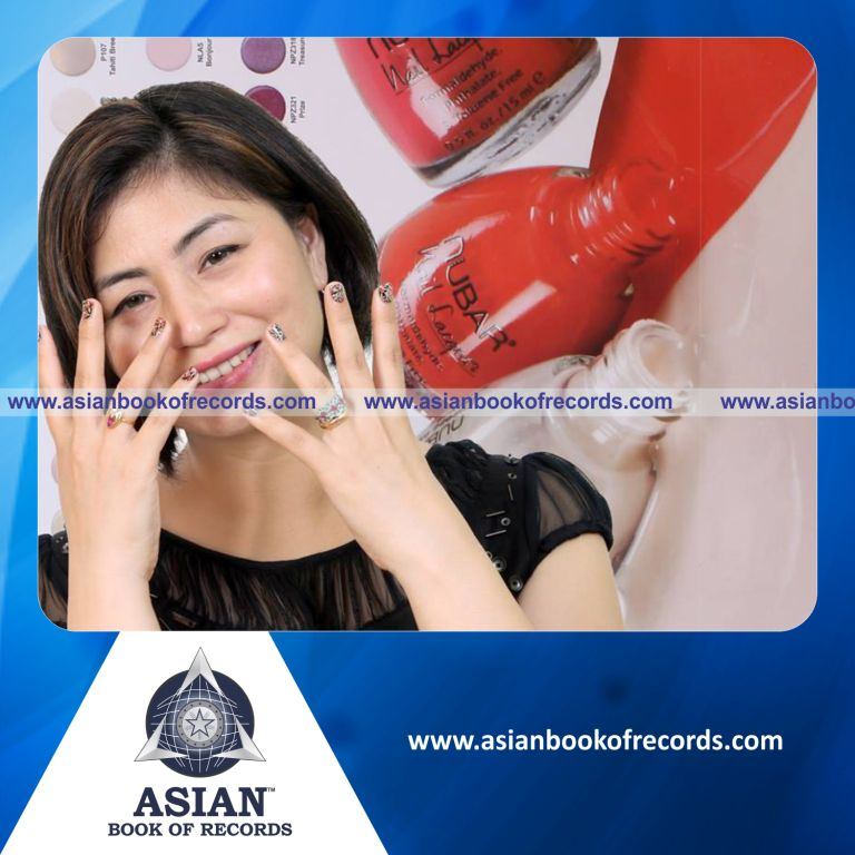 The Highest Number of Nail Art Designs by an Individual (Female) was achieved by Aarati Pinto Pereira, Benaulim, Goa on October 18, 2014. It counted to 215 2D, 3D and 4D nail arts.