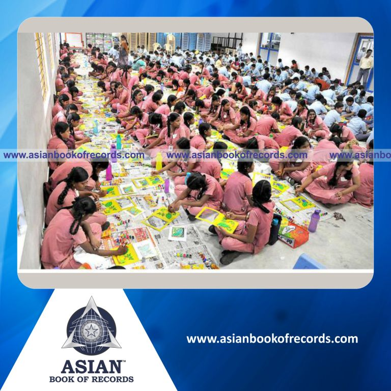The Highest Number of Participants in Kalamkari Artwork for 1 Hour was achieved by Mahatma Montessori Matriculation Higher Secondary School at School Ground, Surveyor Colony, Madurai, Tamil Nadu, India on November 14, 2015. It counted to 11,156 participants.