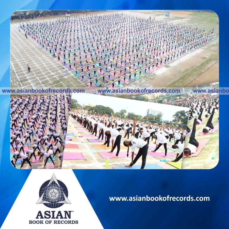 The Highest Number of Participants Performing Yogasanas Simultaneously for 1 Hour (Single Venue) was achieved by Narayana Group of Schools, Chennai, Tamil Nadu, India on December 12, 2017. It counted to 862 participants.