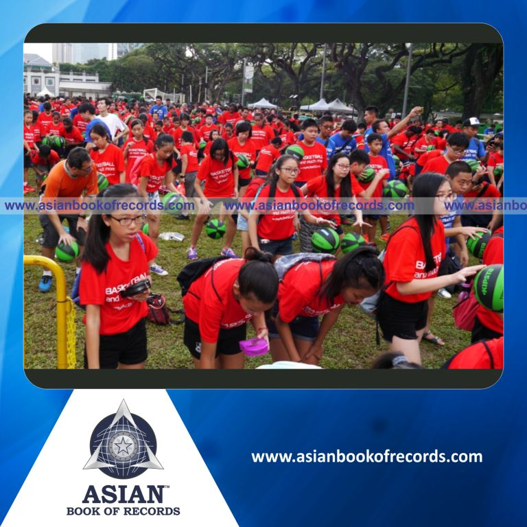The Highest Number of People Bouncing Basketballs Simultaneously (Single Venue) for 5 Minutes was achieved by ActiveSG Basketball Academy at Padang, Connaught Drive, Singapore on May 29, 2016. It counted to 2,180 participants.