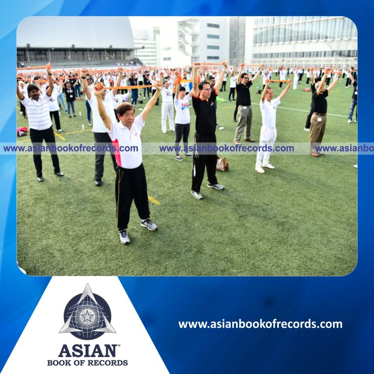 The Highest Number of People Exercising with Resistant Bands Simultaneously (Single Venue) was achieved by North West CDC, Republic Polytechnic and Health Promotion Board, Singapore on April 18, 2015. It counted to 625 participants.