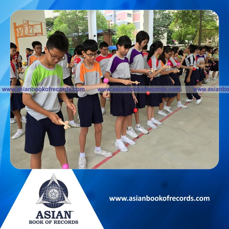 The Highest Number of People Playing Kendama was achieved by Junyuan Secondary School, Singapore on July 11, 2015. It counted to 959 participants.