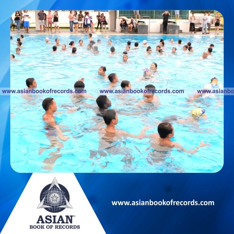The Highest Number of People Treading Water Simultanoeusly (Single Venue) was achieved by The Chiam See Tong Sports Foundation at Toa Payoh Swimming Complex, Singapore on December 30, 2017. It counted to 203 swimmers.