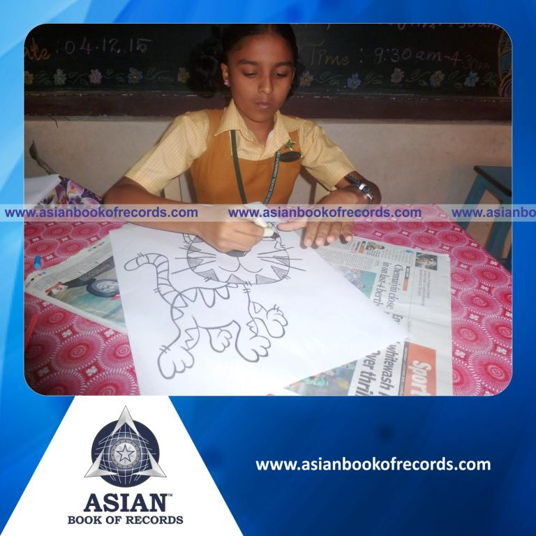 The Highest Number of Pictures Coloured by a Minor (Female) in 6 Hours was achieved by Jotsna.S.Matthew, Standard VI of CMS Matriculation Higher Secondary School, Ganapathy, Coimbatore District, Tamil Nadu, India on December 4, 2015. It counted to 67 pictures.