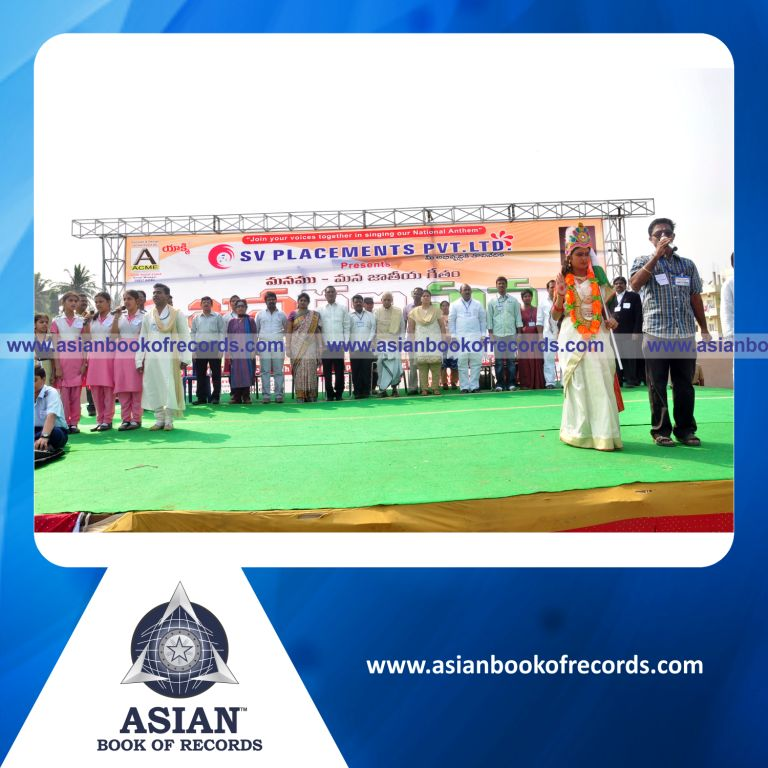 The Highest Number of Times National Anthem Sung by a Team was achieved by SV Placements Private Limited, Visakhapatnam, Andhra Pradesh, India on January 24, 2012. It counted to 6,508 participants for a total of 1,04,128 times.