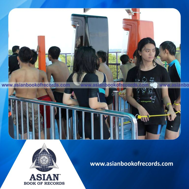 The Highest Number of Torpedo Rides Performed in One Hour was achieved by Wild Wild Wet at Downtown East, Singapore on November 16, 2013. It counted to 106 rides.