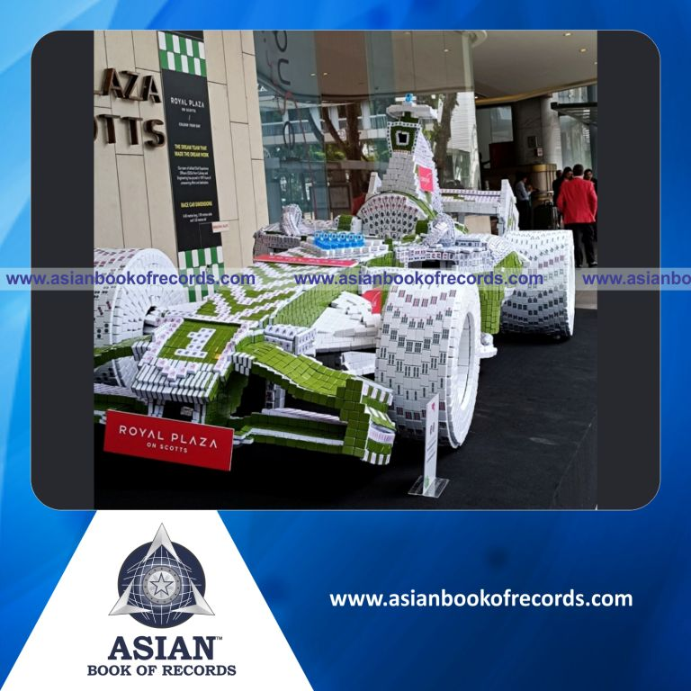 The Largest Car Sculpture Made of Mahjong Tiles was achieved by Royal Plaza on Scotts in Singapore on August 08, 2023. It measured 4.6m x 2.0m x 1.5m.