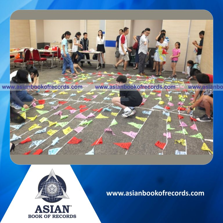 The Largest Display of Buntings with Wishes Written on it was achieved by ISUN Education at Safra Toa Payoh, Singapore on December 4, 2016. It measured 387.14 feet in length.