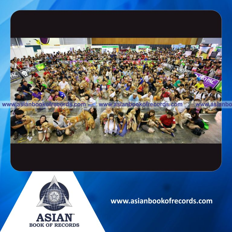 The Largest Gathering of Golden Retrievers was achieved by The Golden Retriever Club of Singapore at Singapore Expo, Singapore on March 1, 2014. It counted to 102 golden retrievers.
