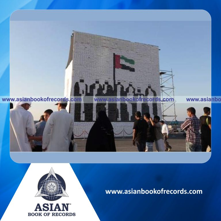 The Largest Greeting Card Mosaic by a Team was achieved by Ajman Tourism Development Department, Ajman, United Arab Emirates on December 1, 2013. It measured 1302.43 square feet.