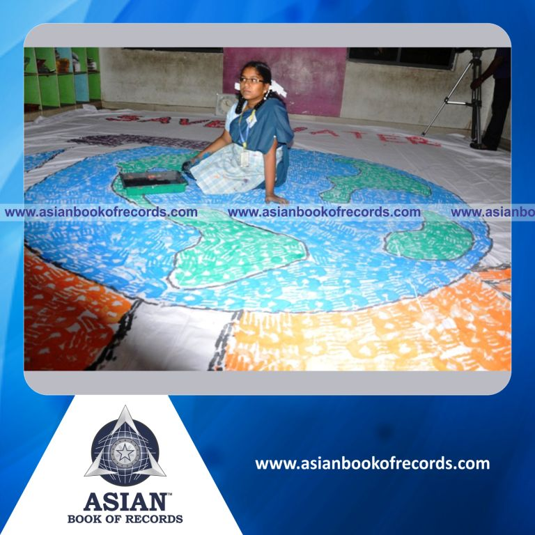 The Largest Handprint Painting by a Minor (Female) was achieved by V.Nivedha, Standard IX of Achariya Bala Siksha Mandir, Puducherry, India on April 22, 2013. It measured 325.44 square feet (18.04 feet in length and 18.04 feet in breadth).