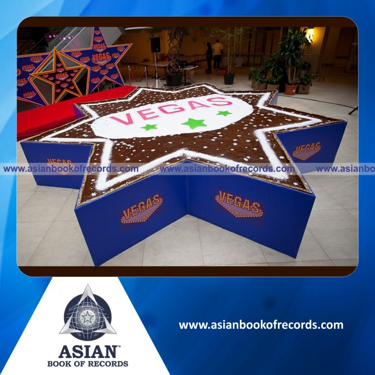 The Largest Honey Spice Cake in the Shape of the Star of Bethlehem was achieved by TRK VEGAS, Russia on December 22, 2012. It measured 16.40 feet in diameter and weighed 1110 kilograms.