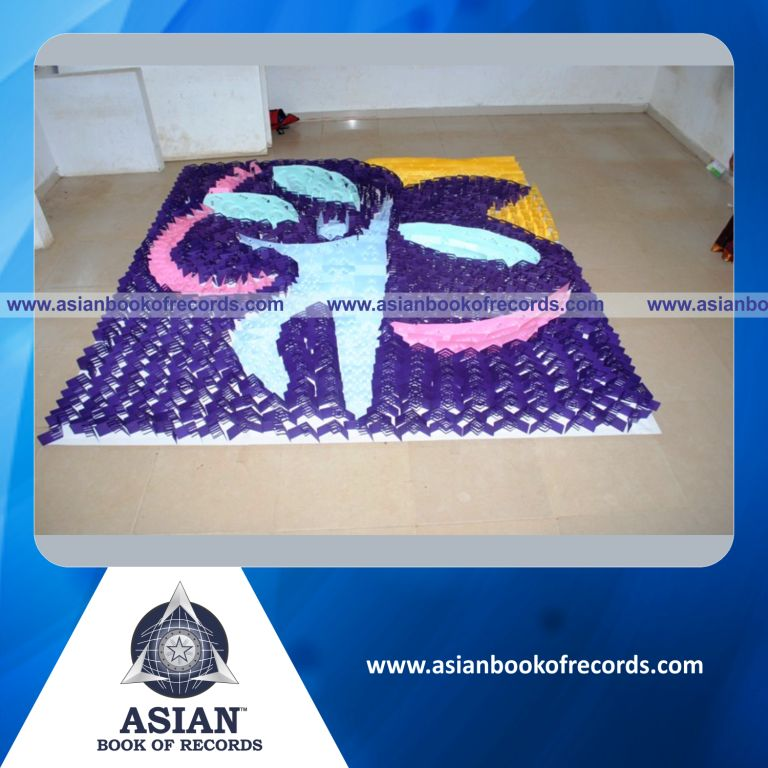 The Largest Kirigami Mosaic by a Minor (Male) was achieved by G.K. Hemanth Ram, Standard VII of Achariya Bala Siksha Mandir, Puducherry, India between April 18, 2013 and April 20, 2013. It measured 116.75 square feet (10.17 feet in length and 11.48 feet in breadth).