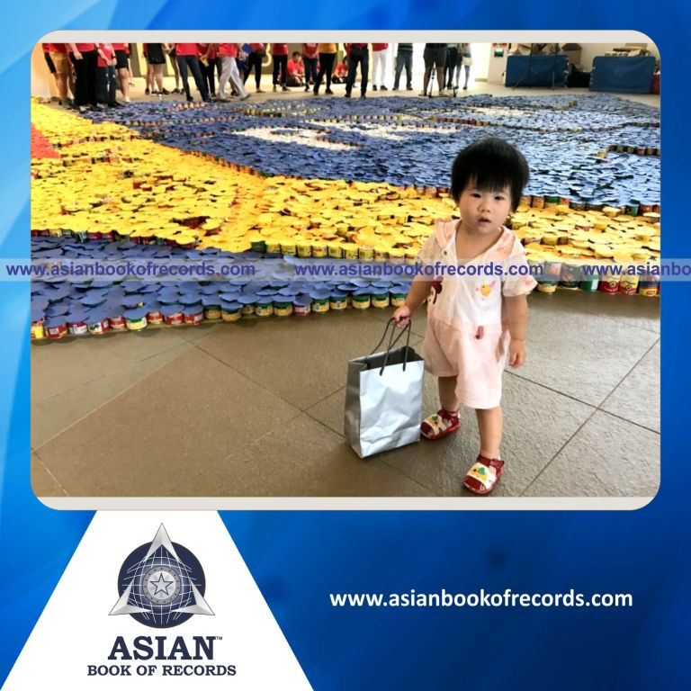 The Largest Logo made with Canned Food by a Team was achieved by members of Kg Chai Chee CC YEC at Heartbeat@Bedok, Singapore on August 13, 2017. It measured 2585.72 square feet (50.85 feet in length and 50.85 feet in breadth) using 13,752 cans.
