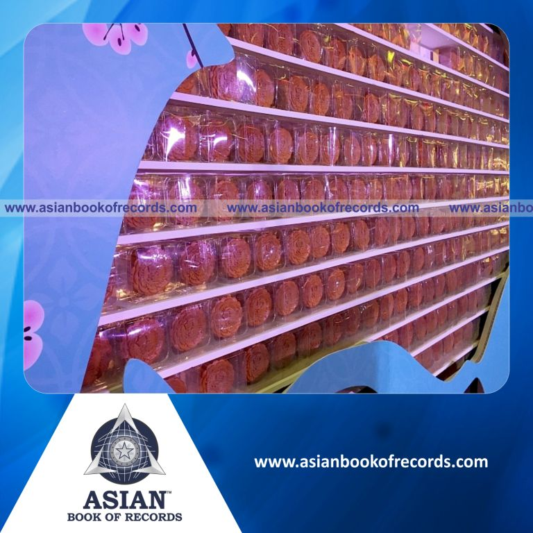 The Largest Map made of Mooncakes was achieved by Frasers Centrepoint Malls at Causeway Point, Singapore on September 27, 2015. It measured 64.55 square feet (9.84 feet in length and 6.56 feet in breadth).