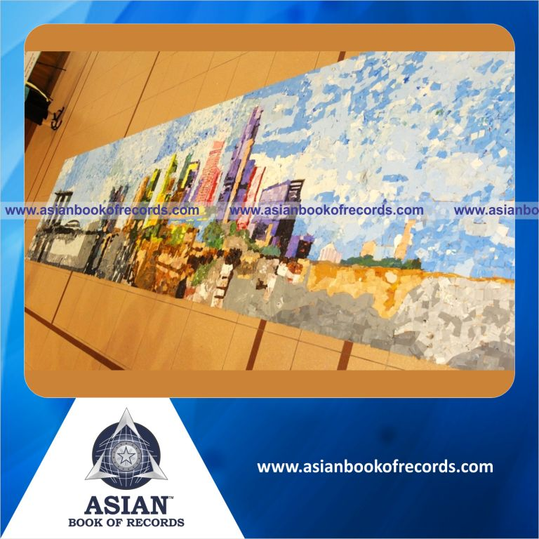 The Largest Mosaic made of Paint Scraps was achieved by Rush-Me-Not Art Studio at Tanglin CC, Singapore on May 21, 2017. It measured 69.82 square feet (17.72 feet in length and 3.94 feet in breadth).