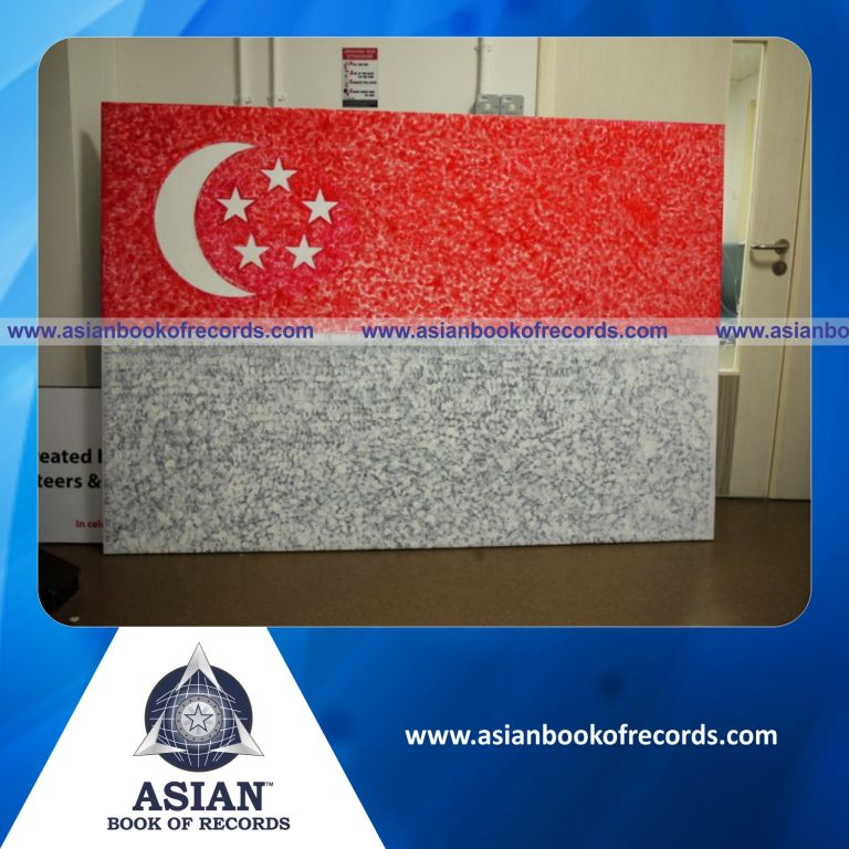 The Largest National Flag made of Thumbprints was achieved by Ren Ci Hospital, Singapore on July 31, 2015. It measured 30.11 square feet (4.59 feet in length and 6.56 feet in breadth).