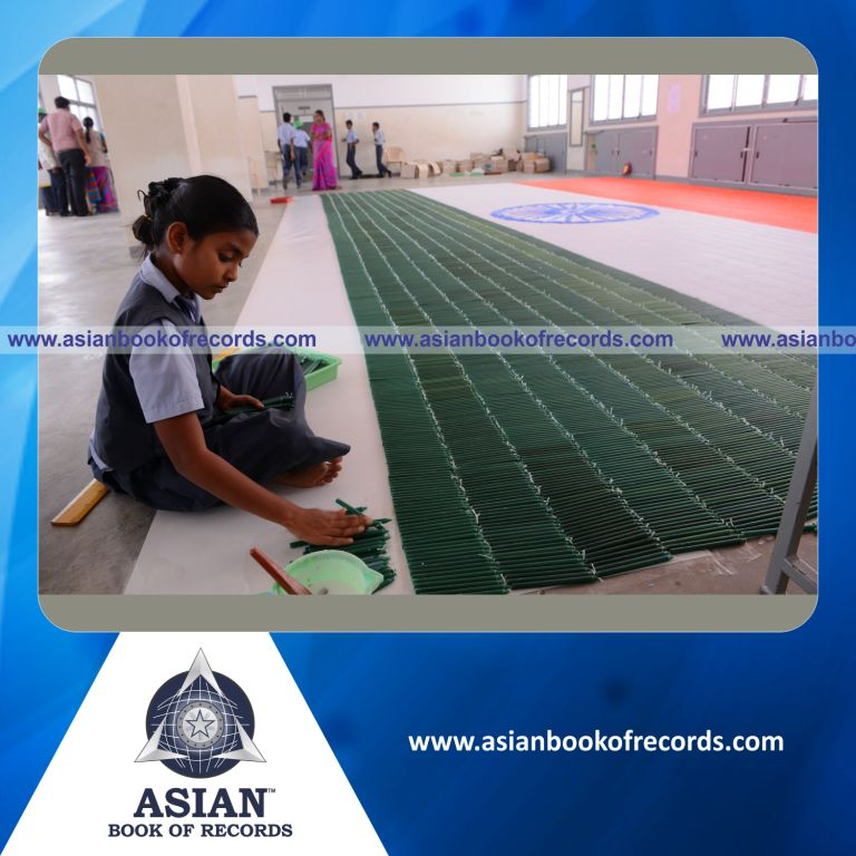 The Largest National Flag made with Candles by a Minor (Female) was achieved by S. Mei Bharathi, Standard VII of SPK Matriculation Higher Secondary School, Tiruchengode, Namakkal District, Tamil Nadu, India between January 5, 2014 and January 6, 2014. It measured 581.45 square feet (29.53 feet in length and 19.69 feet in breadth).