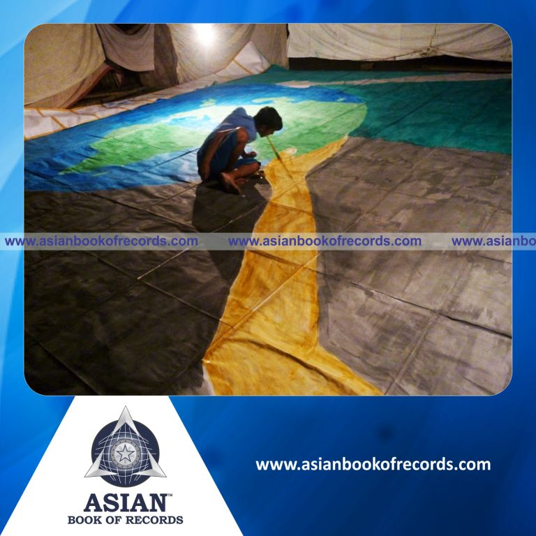 The Largest Painting by Mouth by an Individual (Male) was achieved by Suvodeep Chatterjee, Kolkata, West Bengal, India on November 10, 2013. It measured 896 square feet (35 feet in length and 25.6 feet in breadth).