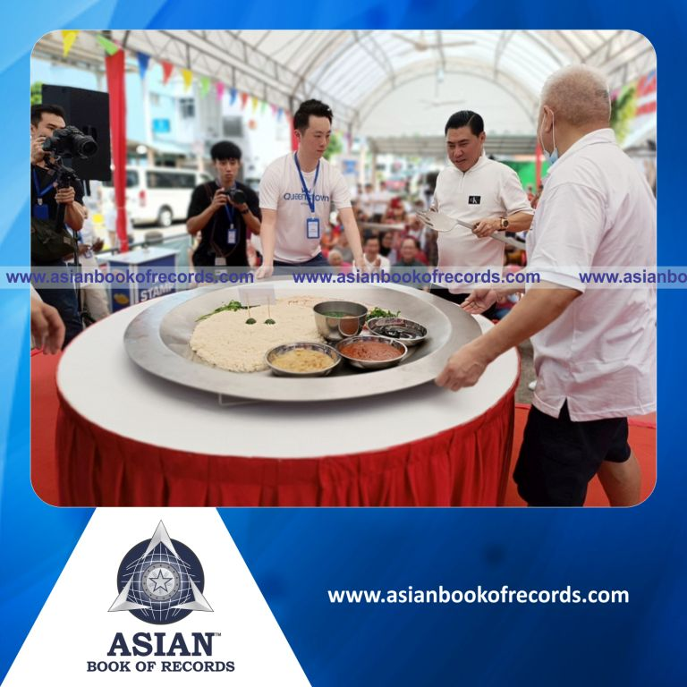 The Largest Plate of Chicken Rice was achieved by Queenstown CC Hawkerfest in Singapore on November 18, 2023. It measured 1.2 meters in dia and held 5.7 Kilograms of Chicken Rice.