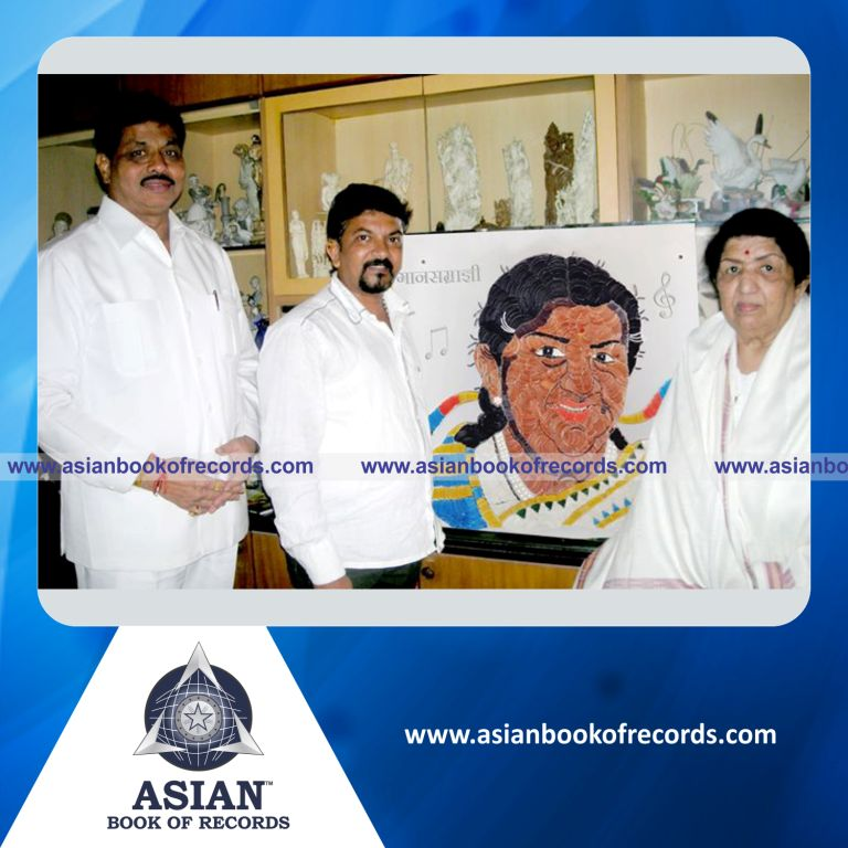 The Largest Portrait made with Bangles by an Individual (Male) was achieved by Hemant Dandawate, Ahmednagar, Maharashtra, India on October 3, 2012. It measured 6.25 square feet (2.5 feet in length and 2.5 feet in breadth).