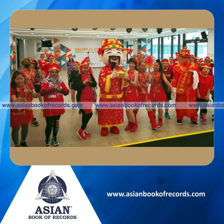 The Largest Zumba Workout Relay in God-Of-Fortune Headwear was achieved by Tampines Hub and Tampines West CSC in Singapore on February 21, 2021. It clocked to 7 hours, a total of 188 people took part in the mall.