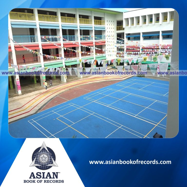 The Longest Bunting made of used Plastic Bags was achieved by Juying Primary School, Singapore on August 06, 2015. It measured 813.65 feet in length.