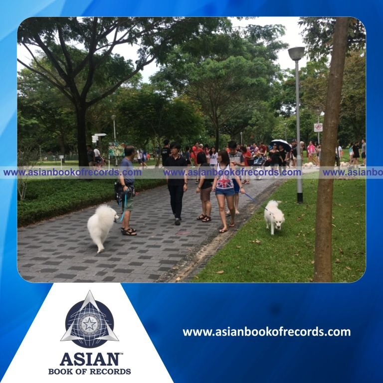The Longest Dog Walk Line was achieved by Singapore Heart Foundation at Bishan-AMK Park, Singapore on July 08, 2017. It measured 1 kilometer and it counted to 352 dogs.