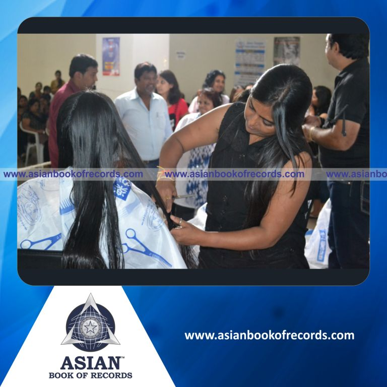 The Longest Hair Cut Marathon by a Team was achieved by Sheetal Shah at Regent Square, Adajan, Surat, Gujarat, India on February 3, 2013. It lasted for 10 hours for 1076 haircuts.