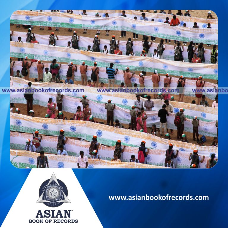 The Longest National Flag made with Handprints by a Team was achieved by Sree Sakthi Engineering College and Elite Circle in association with Martin Homoeopathy Medical College & Hospitals, Lions Club International District 324-B5 and Aroma Group of Companies at Sree Sakthi Engineering College Campus, Karamadai, Coimbatore District, Tamil Nadu, India on August 9, 2015. It measured 5984.25 feet in length and 3.3 feet in breadth in an event titled as “Incredible India”.