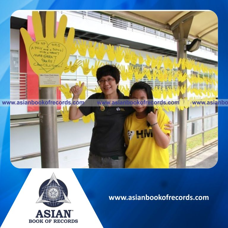 The Longest Palm Print Chain made by a Team was achieved by Poly's School of Humanities and Social Sciences, Singapore on May 3, 2013. It measured 1089.24 feet in length.