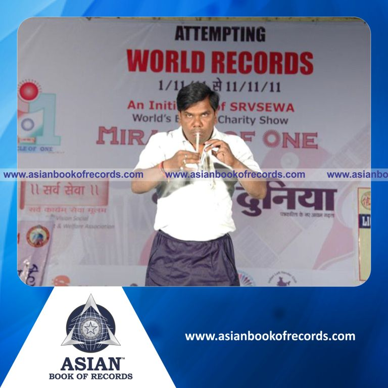 The Longest Piece of Cloth Swallowed by an Individual (Male) was achieved by G P Katiya and organized by Shri Vision Social Empowerment & Welfare Association, Indore, Madhya Pradesh, India on November 9, 2011. It measured 18 feet in length and 2.5 inches in breadth.