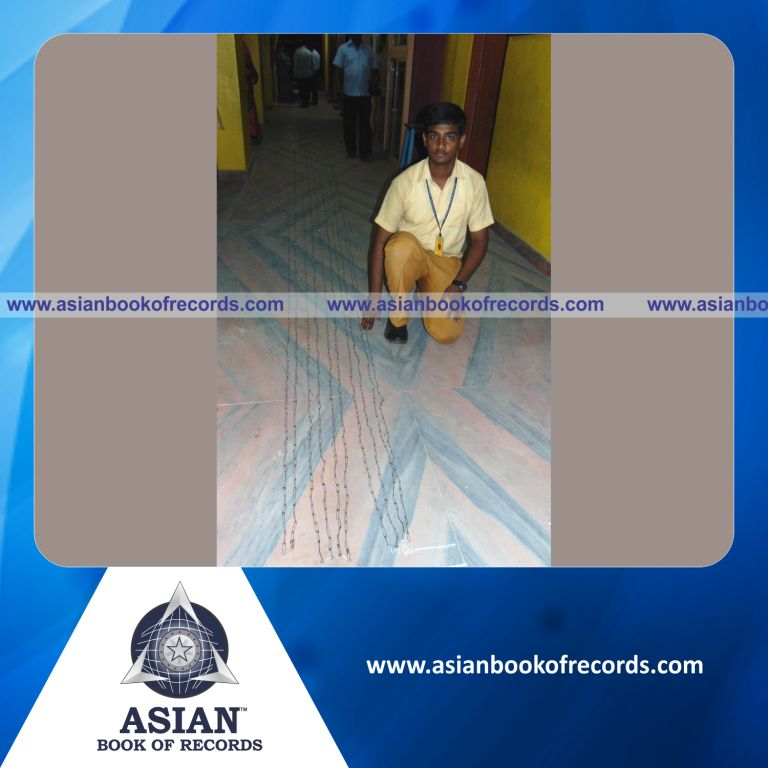 The Longest Safety Pin Chain made by a Minor (Male) in 4 Hours was achieved by Standly Jebadurai, Standard X of CMS Matriculation Higher Secondary School, Ganapathy, Coimbatore District, Tamil Nadu, India on December 4, 2015. It measured 353.35 feet in length.