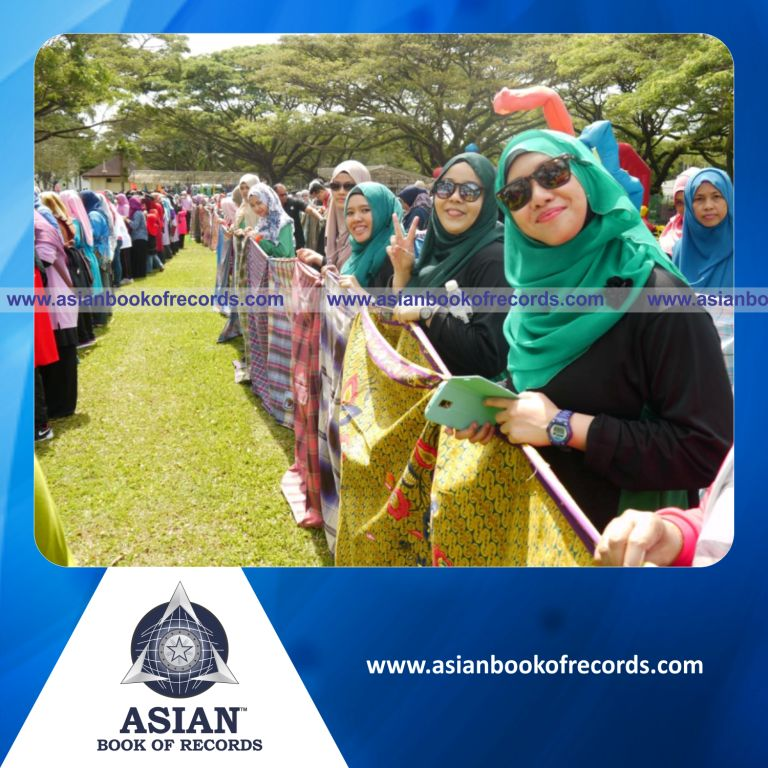 The Longest Sarong Chain was achieved by Islamic Religious Council of Singapore (MUIS) at Pasir Ris Park, Singapore on January 31, 2016. It measured 1738.85 feet in length.