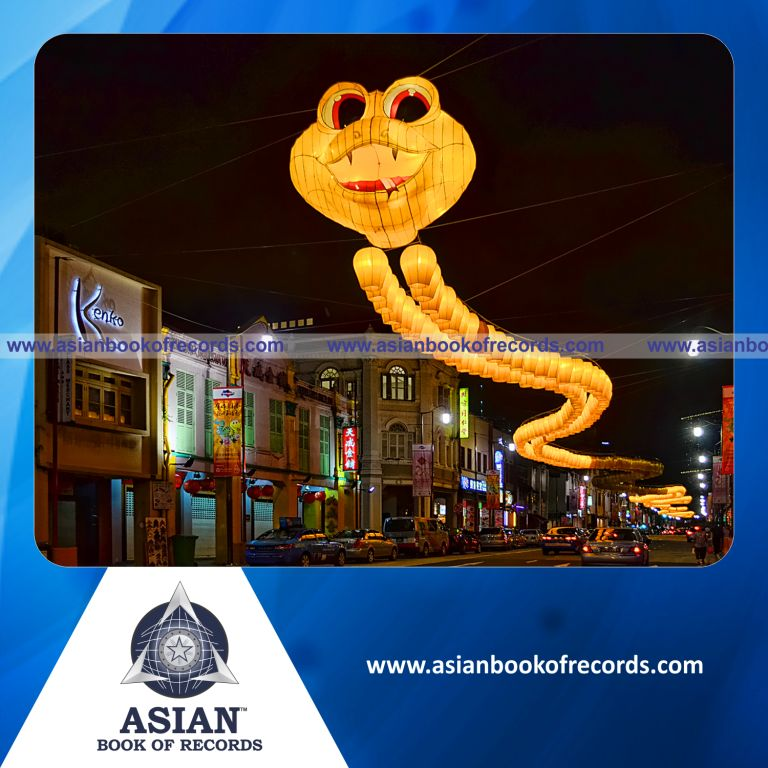 The Longest Sculpture made with Sky Lanterns was achieved by Kreta-Ayer CCC at South Bridge Road, Singapore on January 31,2013. It measured 984.25 feet in length.