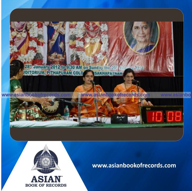 The Longest Singing Marathon of Annamacharya Sankeertanarchana by a Team was achieved by Chaganti Sandhya Sundar and Somayajula Indira Bharadwaj, Vishakhapatnam, Andhra Pradesh, India on January 29, 2012. It lasted for 25 hours and 20 minutes.