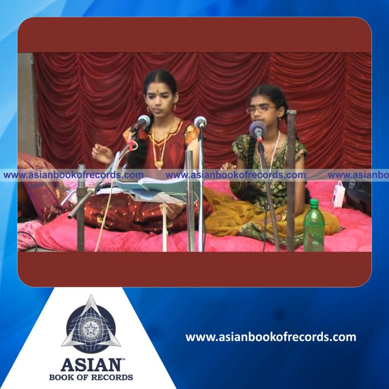 The Longest Singing Marathon of Annamacharya Sankeerthanaas was achieved by Lakshmi Swetha Koti and Satya Akshobhya Koti, Tuni, Andhra Pradesh, India on September 15, 2013. It lasted for 5 hours and 30 minutes.