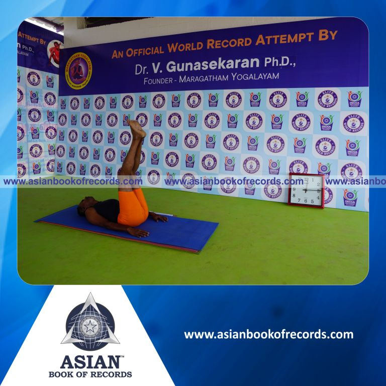 The Longest Time Holding Ardha Halasana Yoga Pose by an Individual (Male) was achieved by Dr.V.Gunasekaran, Founder-Maragatham Yogalayam at Udumalpet, Tirupur District, Tamil Nadu, India on September 26, 2019. It lasted for 3 Minutes and 2 Seconds.
