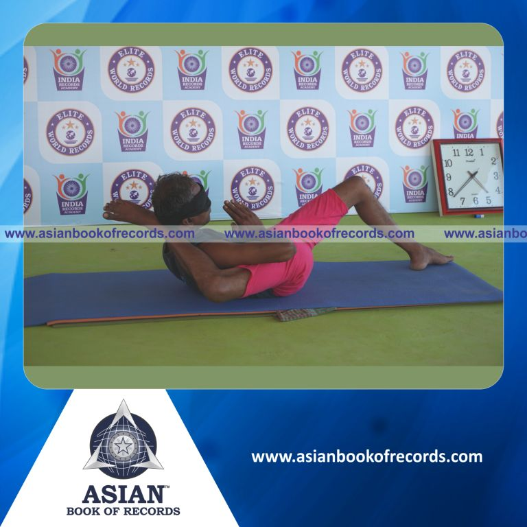 The Longest Time Holding Daksina Bhairavasana Yoga Pose Blindfolded by an Individual (Male) was achieved by Dr.V.Gunasekaran, Founder-Maragatham Yogalayam at Udumalpet, Tirupur District, Tamil Nadu, India on September 21, 2019. It lasted for 3 Minutes and 5 Seconds.
