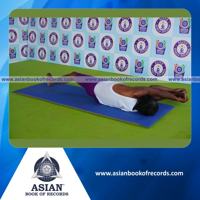 The Longest Time Holding Daksina Trivikramasana Yoga Pose Blindfolded by an Individual (Male) was achieved by Dr.V.Gunasekaran, Founder-Maragatham Yogalayam at Udumalpet, Tirupur District, Tamil Nadu, India on September 22, 2019. It lasted for 3 Minutes and 5 Seconds.